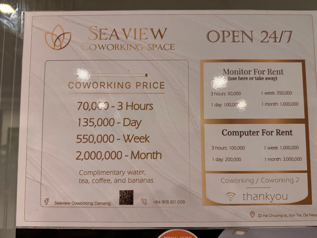 אחד מהוותיקים בעיר, ממוקם בקומה העליונה של מלון באזור תיירותי קרוב לים. הייחוד של ה-Sea View הוא אופציית ה-Coliving: המלון מציע חבילה הכוללת חדר לחודש + גישה למתחם העבודה החל מ-7,000,000 דונג. זהו דיל מצוין למי שמנסה לחסוך בעלויות.
