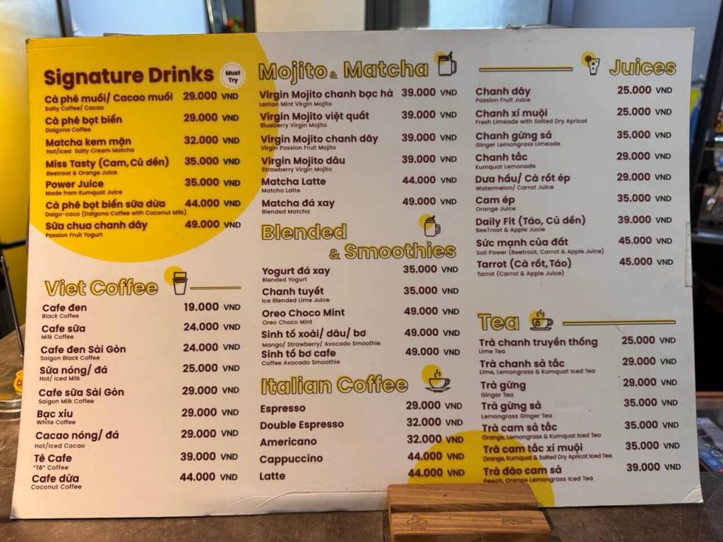 מחירים: מינימום הזמנה של 35,000 דונג ל-4 שעות ישיבה.
